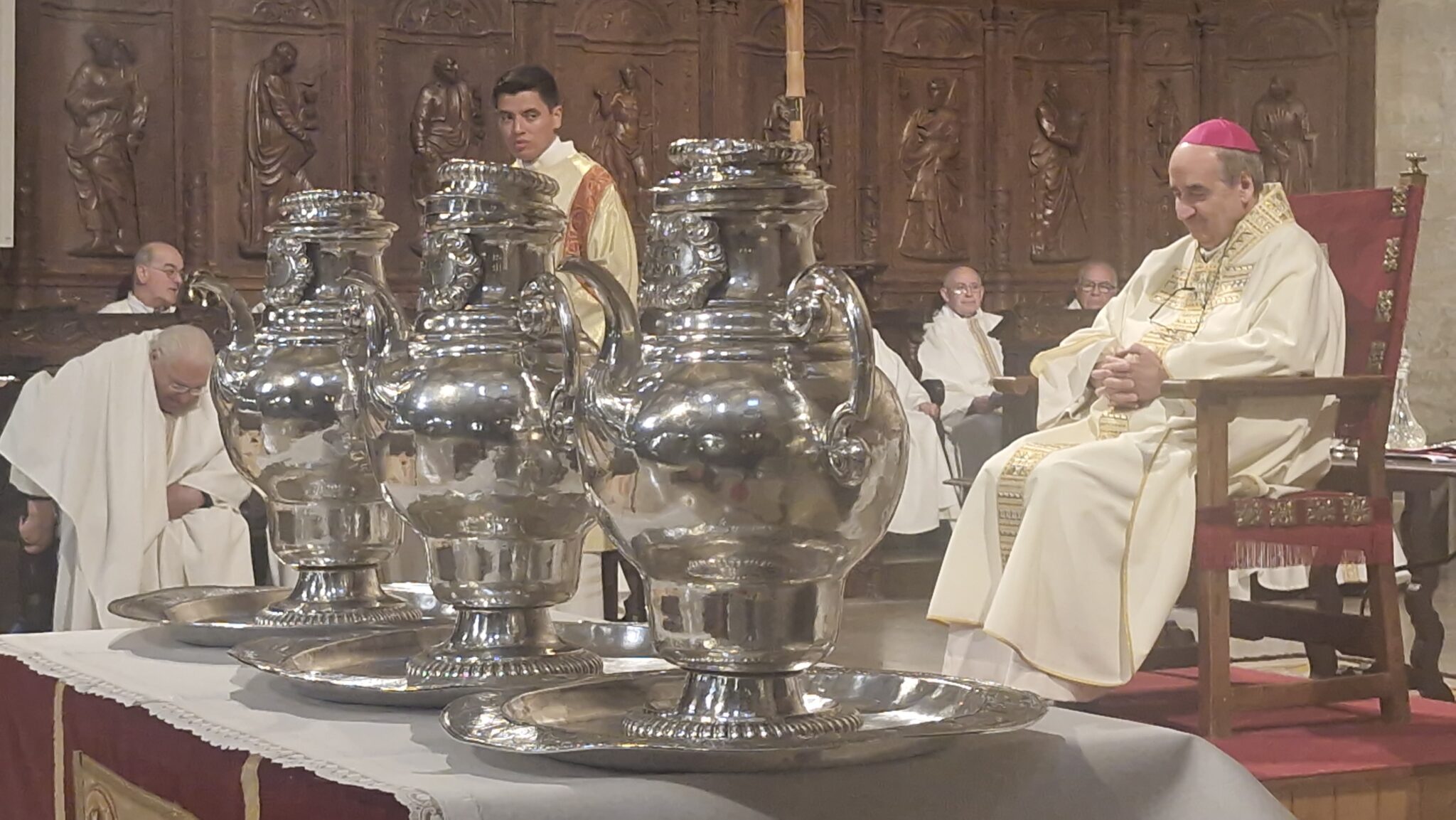 La celebración de la Misa Crismal, que tradicionalmente tiene lugar en la mañana del Jueves Santo y que en la diócesis se ha adelantado a este Miércoles Santo, constituye uno de los momentos más significativos del año litúrgico, al expresar de manera especial la comunión del obispo con sus sacerdotes y la unidad de la Iglesia diocesana.
