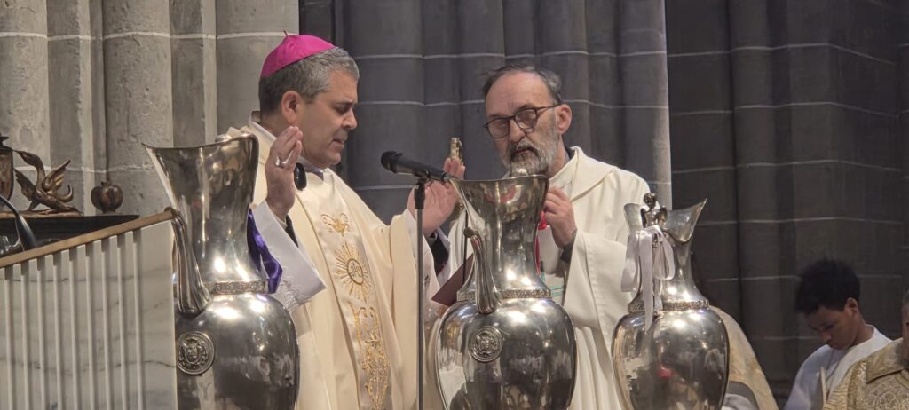 A continuación, don Ángel pidió a los monjes de El Pueyo que sostuvieran el báculo del obispo Florentino para que los fieles, llegados de toda la diócesis, pudieran acercarse al símbolo de una diócesis martirial, con 78 beatificados y una causa abierta, hace un año, para la beatificación de 252 sacerdotes, religiosas y seglares. Así, sus palabras al final de la eucaristía solemnizada por el coro parroquial fuero, como anunció, tres vítores: «Orgullosos de nuestra fe, orgullosos de nuestros mártires, orgullosos de nuestra Iglesia diocesana», que remató con un «orgullosos de nuestra Unidad Pastoral y orgullosos del Bajo Cinca».
