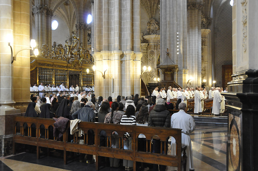 Esta Misa Crismal ha tenido un matiz especial, al enmarcarse en el año que el Arzobispo está dedicando especialmente a sus sacerdotes. Don Carlos ha aprovechado para informar sobre el estado de las Visitas Pastorales, que se encuentran muy avanzadas: «Solo quedan las dos vicarías rurales; gracias por vuestro interés y acogida».