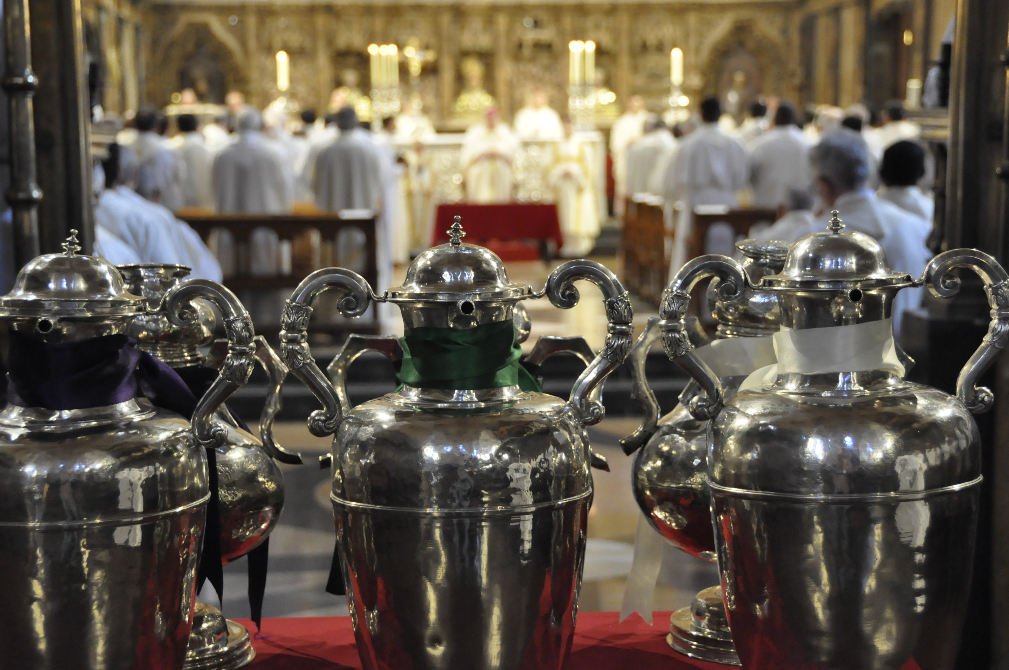 Tras la ceremonia, los sacerdotes han recogido los óleos bendecidos para llevarlos a todas las parroquias de la Archidiócesis, donde mañana, Jueves Santo, comenzará el Gran Triduo Pascual.