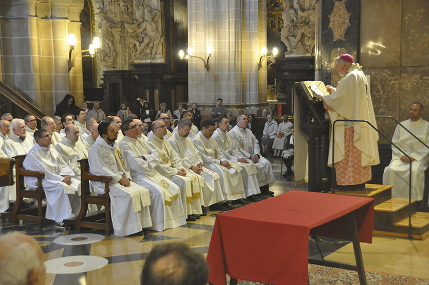 El Arzobispo ha vinculado cada uno de los aceites sagrados con la labor cotidiana del clero: «El óleo de los enfermos nos recuerda que nuestra fidelidad sacerdotal es una caricia en el dolor. El de los catecúmenos hace que nuestra fidelidad en el ministerio dé fuerza en los que buscan la verdad. Y el santo crisma nos recuerda que en nuestra fidelidad sacerdotal nuestra identidad pertenece al Señor. Es Cristo quien vive en mí, como dice san Pablo. En nuestro ministerio somos más felices y más capaces de consolar en este mundo tan sediento de esperanza»