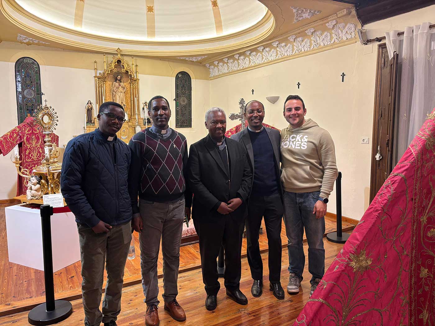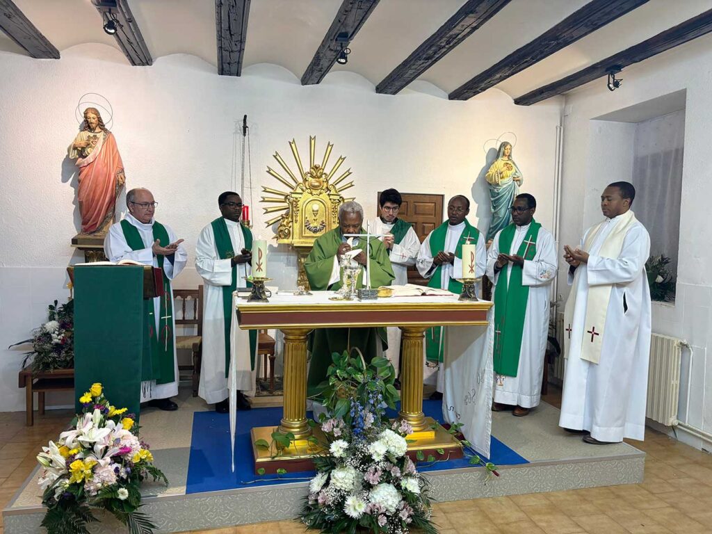 Al término de la Eucaristía, el párroco de Muniesa, D. Medard, dirigió unas palabras a los asistentes, destacando el valor de este encuentro y la riqueza que supone el intercambio entre Iglesias hermanas. Seguidamente, tomó la palabra Monseñor D. Leónidas, quien quiso agradecer de manera especial la hospitalidad y la cálida acogida recibida en tierras turolenses, así como el acompañamiento brindado a los sacerdotes de su diócesis durante el tiempo que llevan aquí.