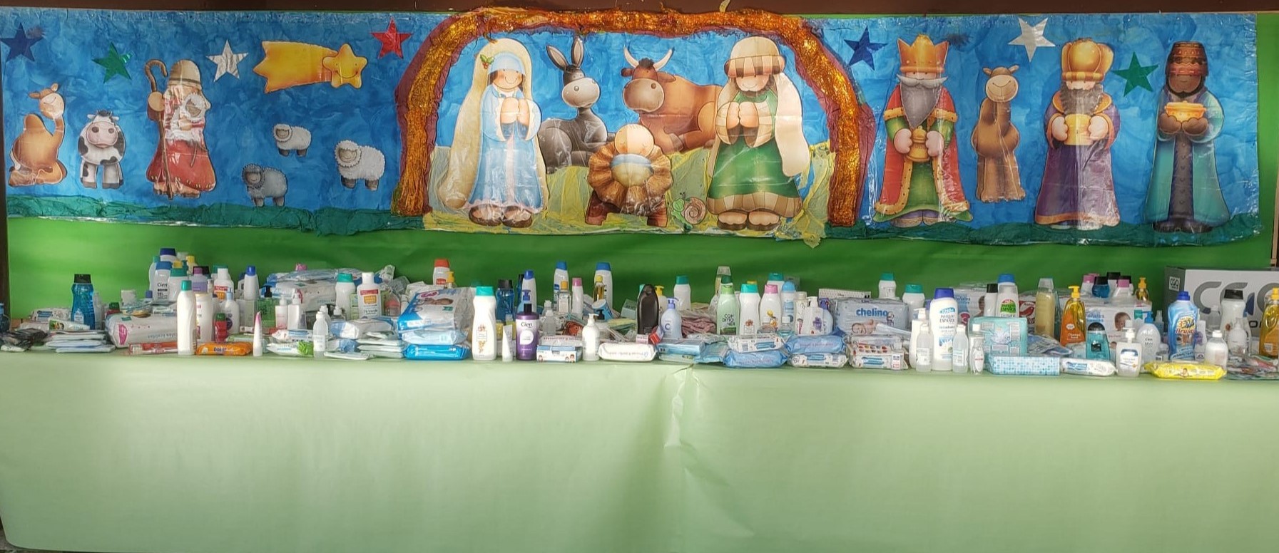 Productos para la higiene personal y específicos de bebé, toallitas, pañales, mascarillas, hidrogel…son los productos que se están recogiendo estos días en el centro escolar y que serán repartidos a través de Cáritas y Red Madre.