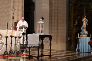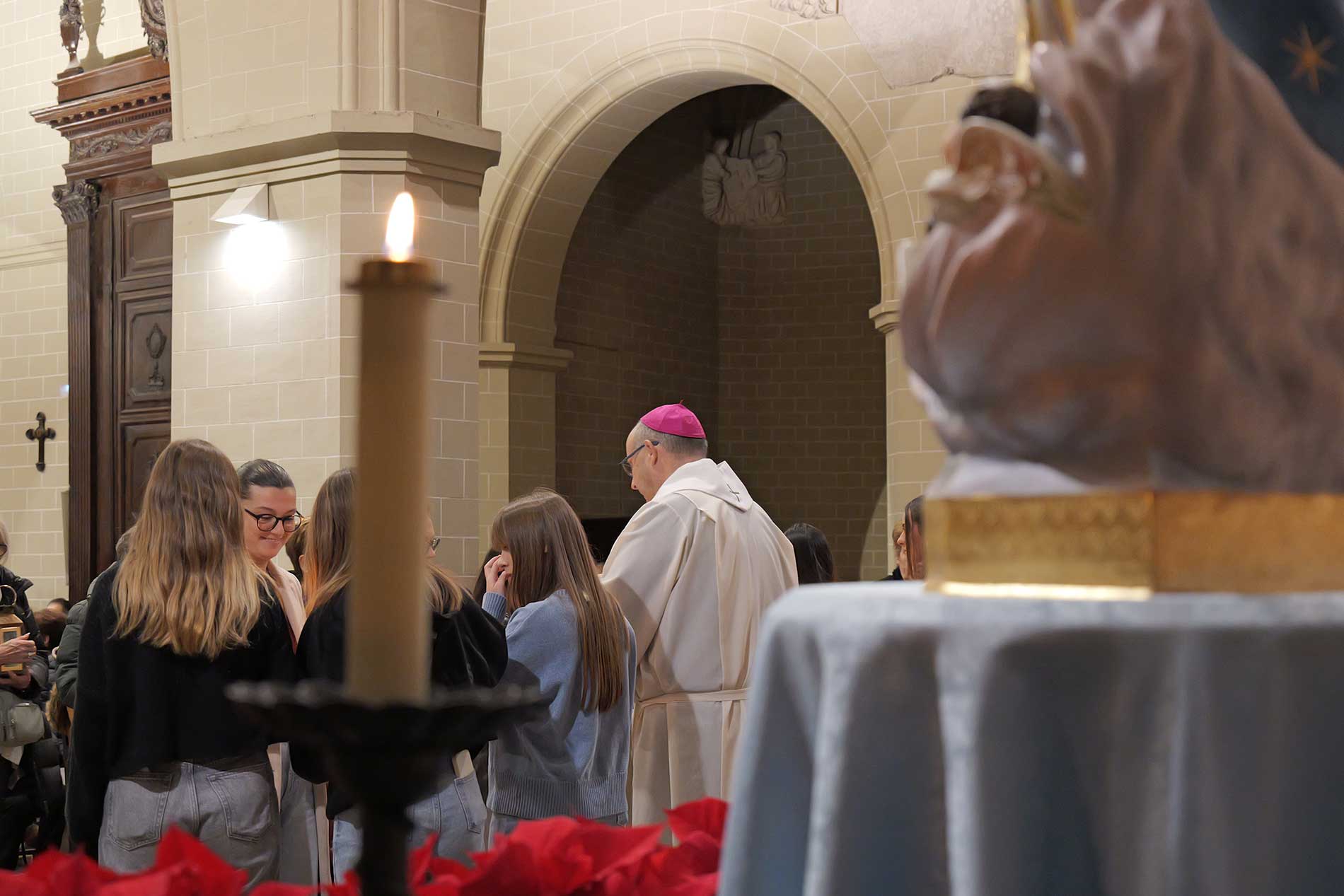 Tras la lectura del Evangelio de las bienaventuranzas, nuestro Obispo, invitaba que en la luz de Belén podamos ver la luz de la esperanza, una luz que debemos acoger y compartir. Y nos proponía tres actitudes para fortalecer nuestra esperanza: «Primero ver, ver la bondad, la ternura que hay en nuestro mundo. Segunda actitud rezar, para sentirnos acompañados y no perder la esperanza. Y tercera actitud amar […] el amor y la esperanza siempre van de la mano».