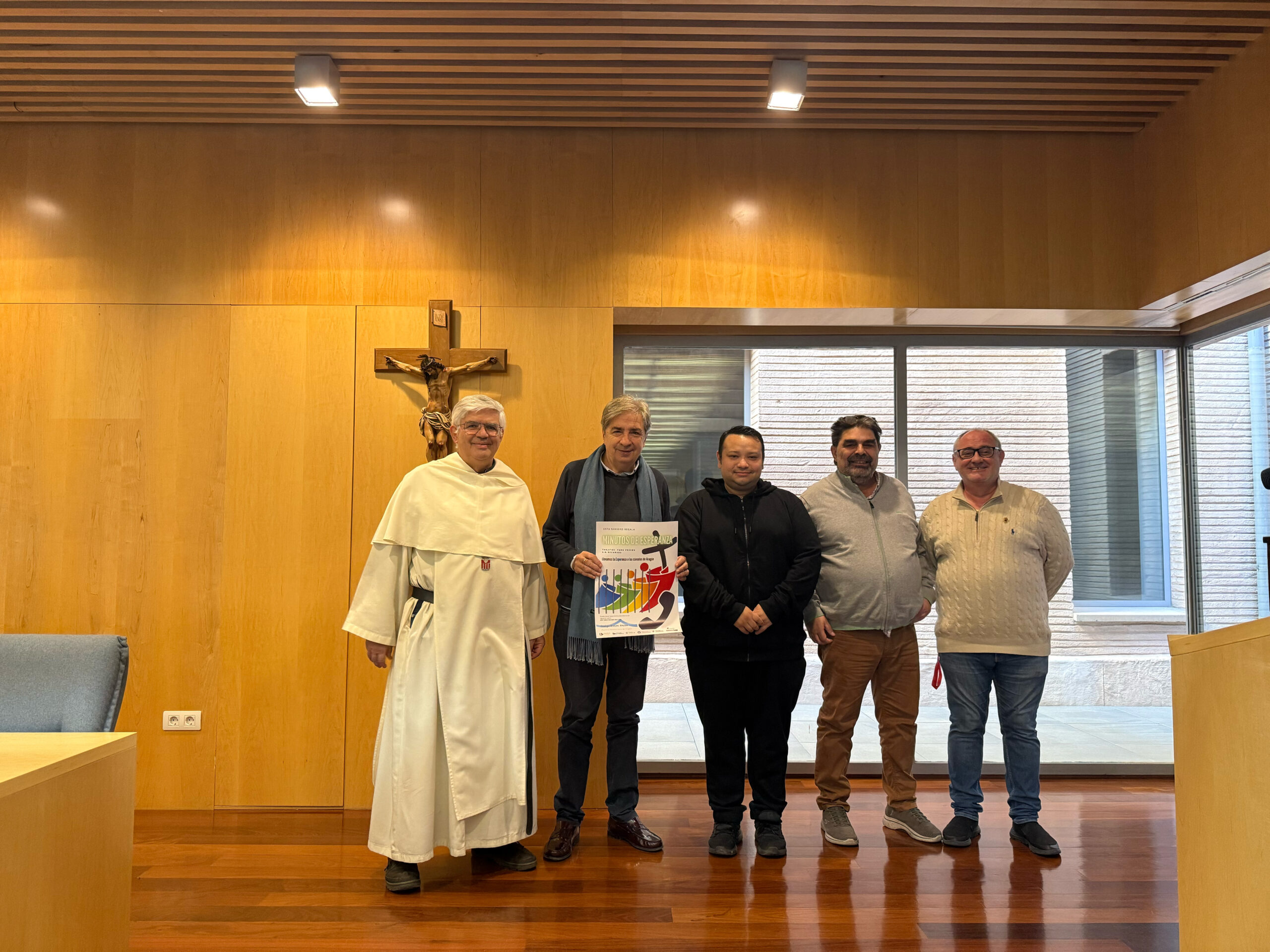 La Pastoral Penitenciaria de Aragón ha presentado esta mañana la novena edición de la campaña “Minutos de Esperanza”, una iniciativa solidaria destinada a facilitar que las personas privadas de libertad y sin recursos puedan llamar a sus familias durante la Navidad. El acto, celebrado en Zaragoza, ha contado con la participación de Javier Muñoz, delegado episcopal de Pastoral Penitenciaria de Zaragoza y coordinador autonómico; fray Fernando Ruiz, mercedario y ex capellán del Centro Penitenciario de Teruel; y Narciso Vioque, responsable del Hogar Mercedario de Zaragoza.