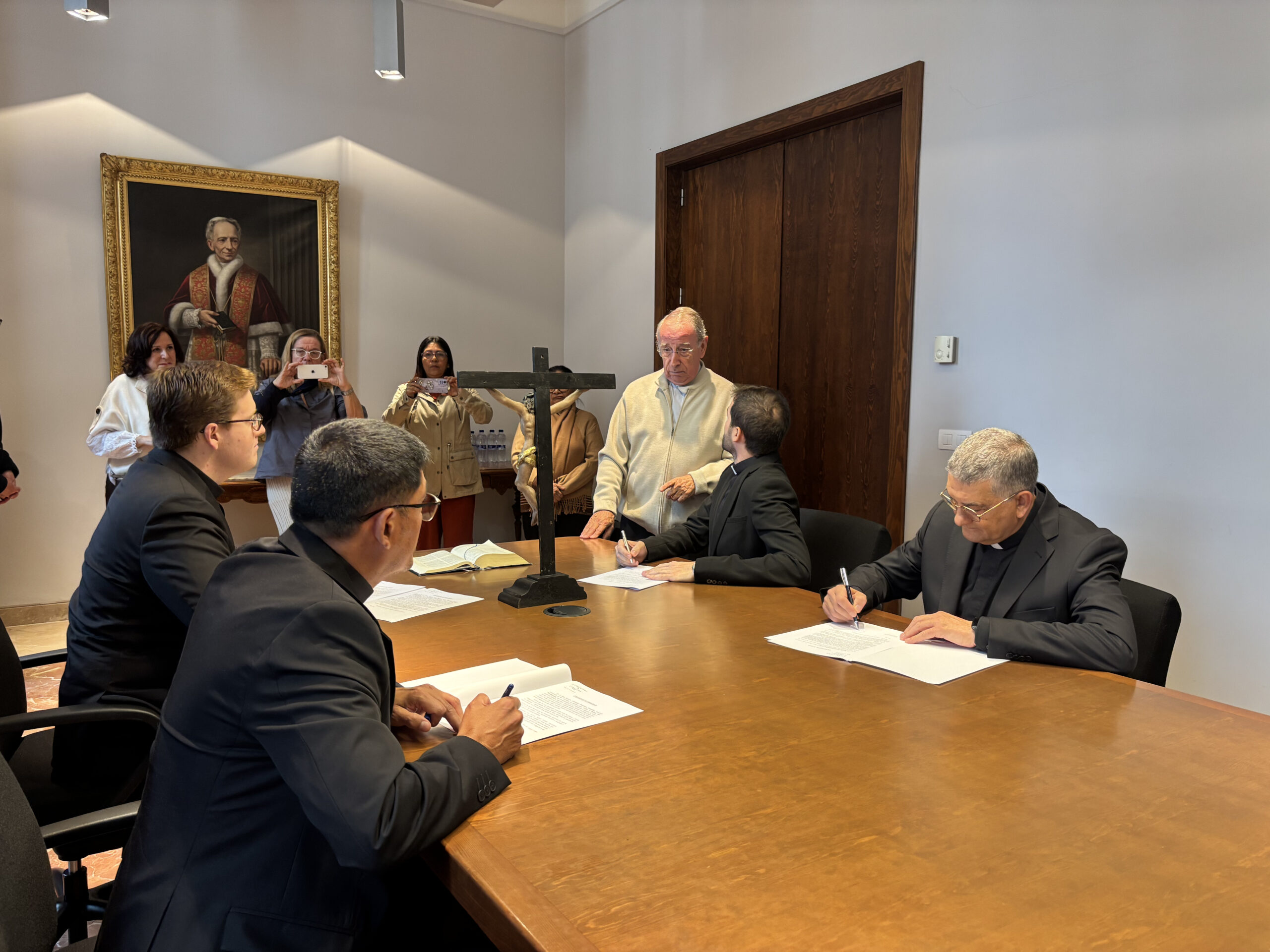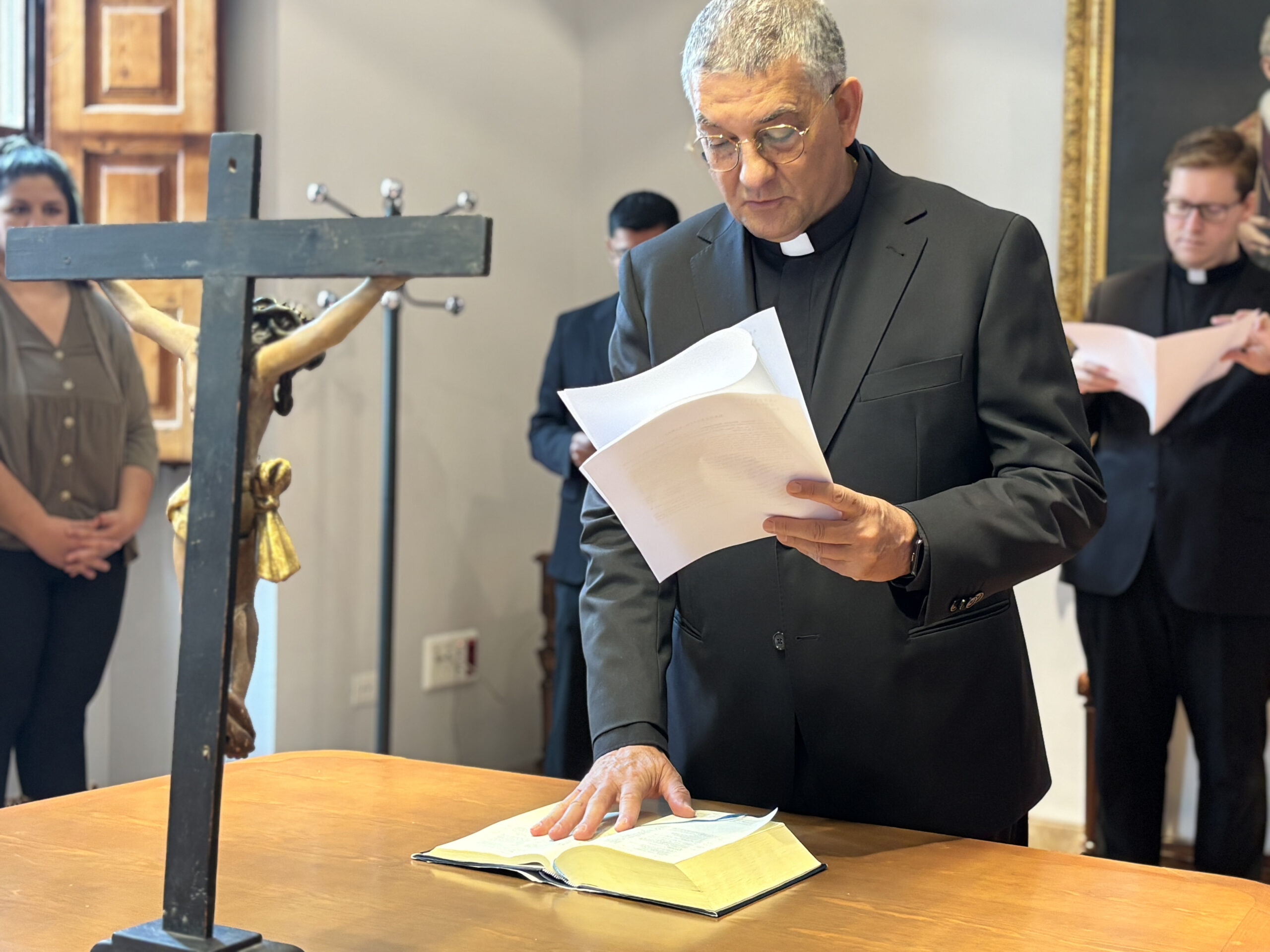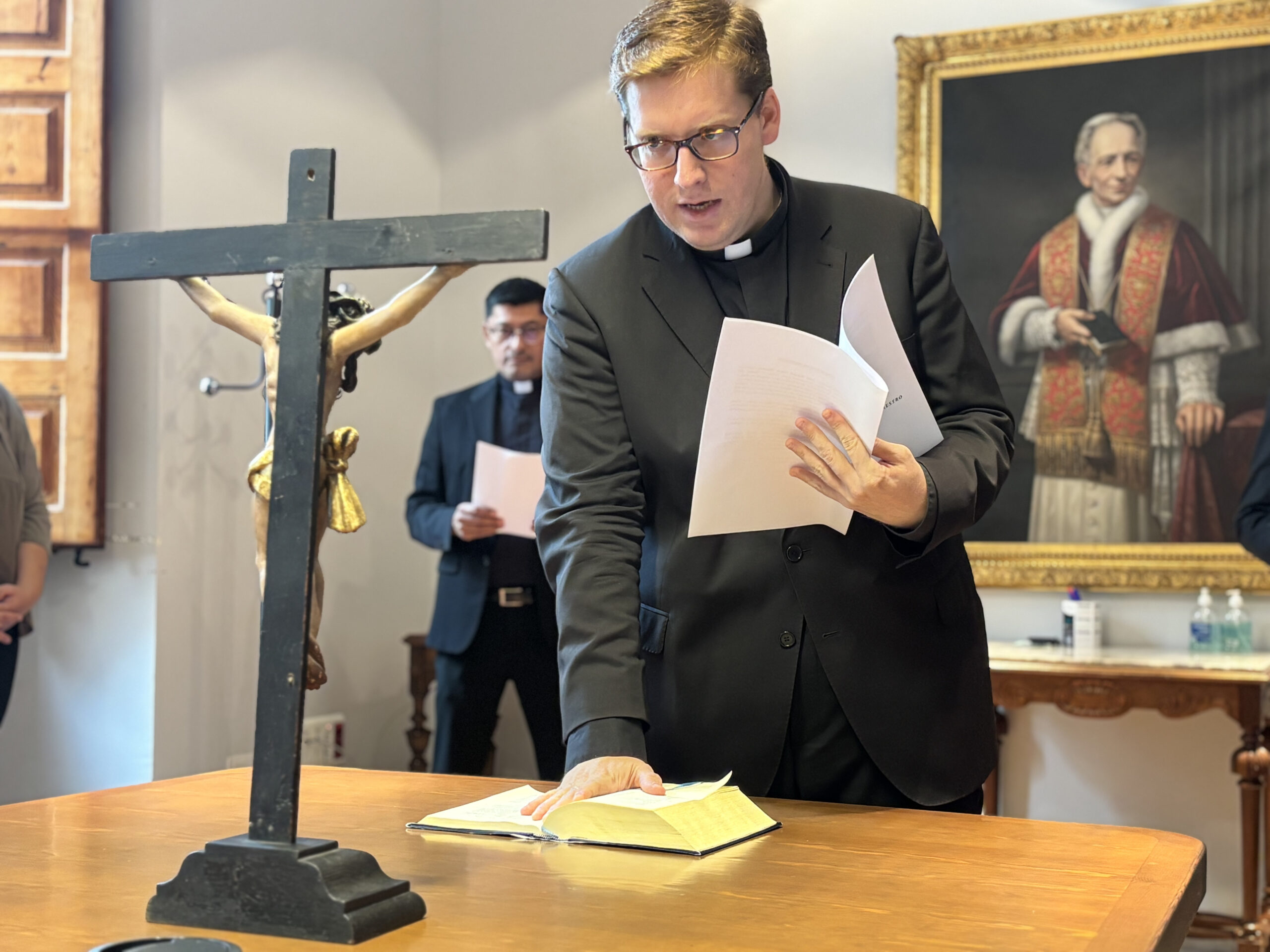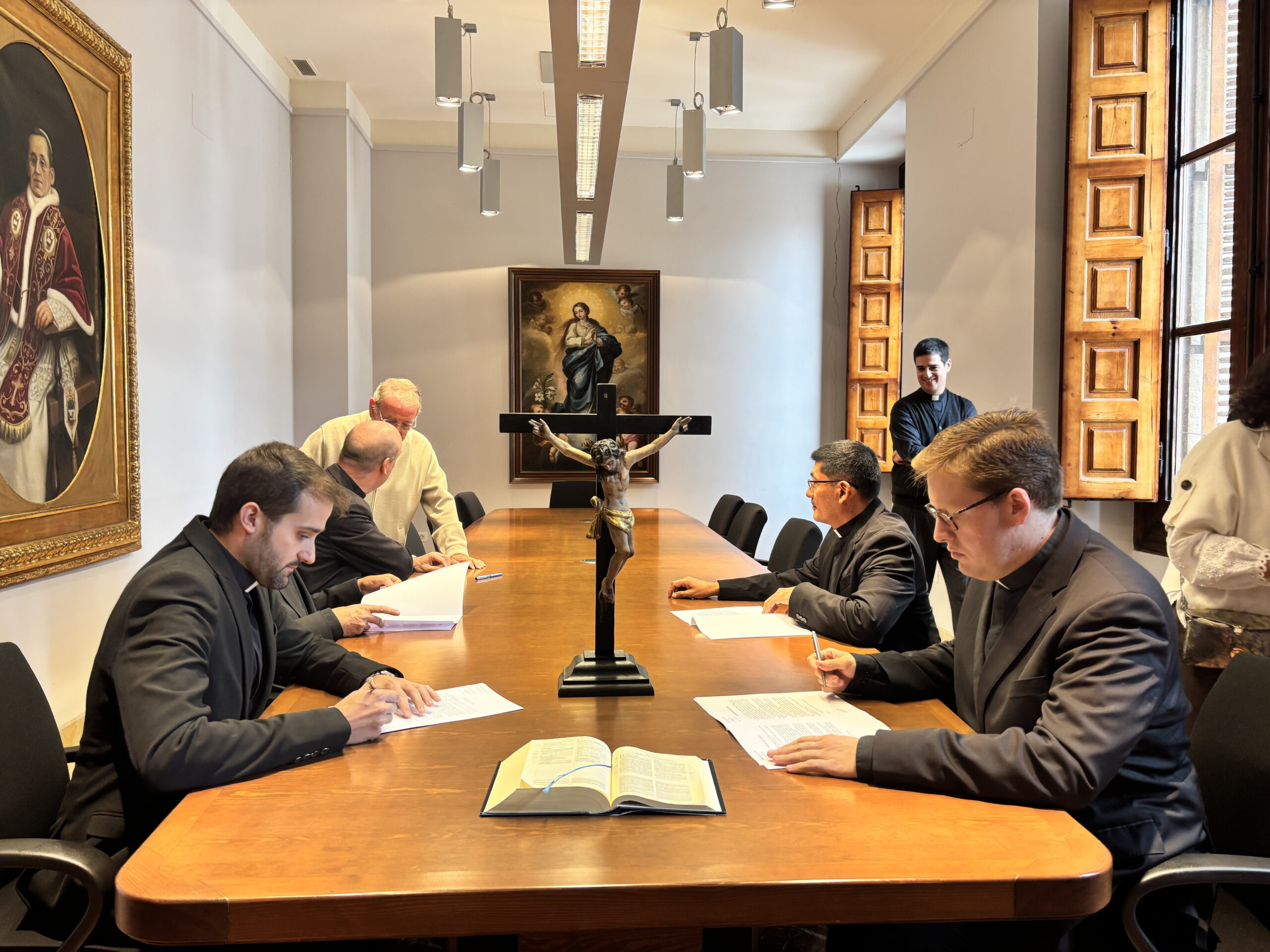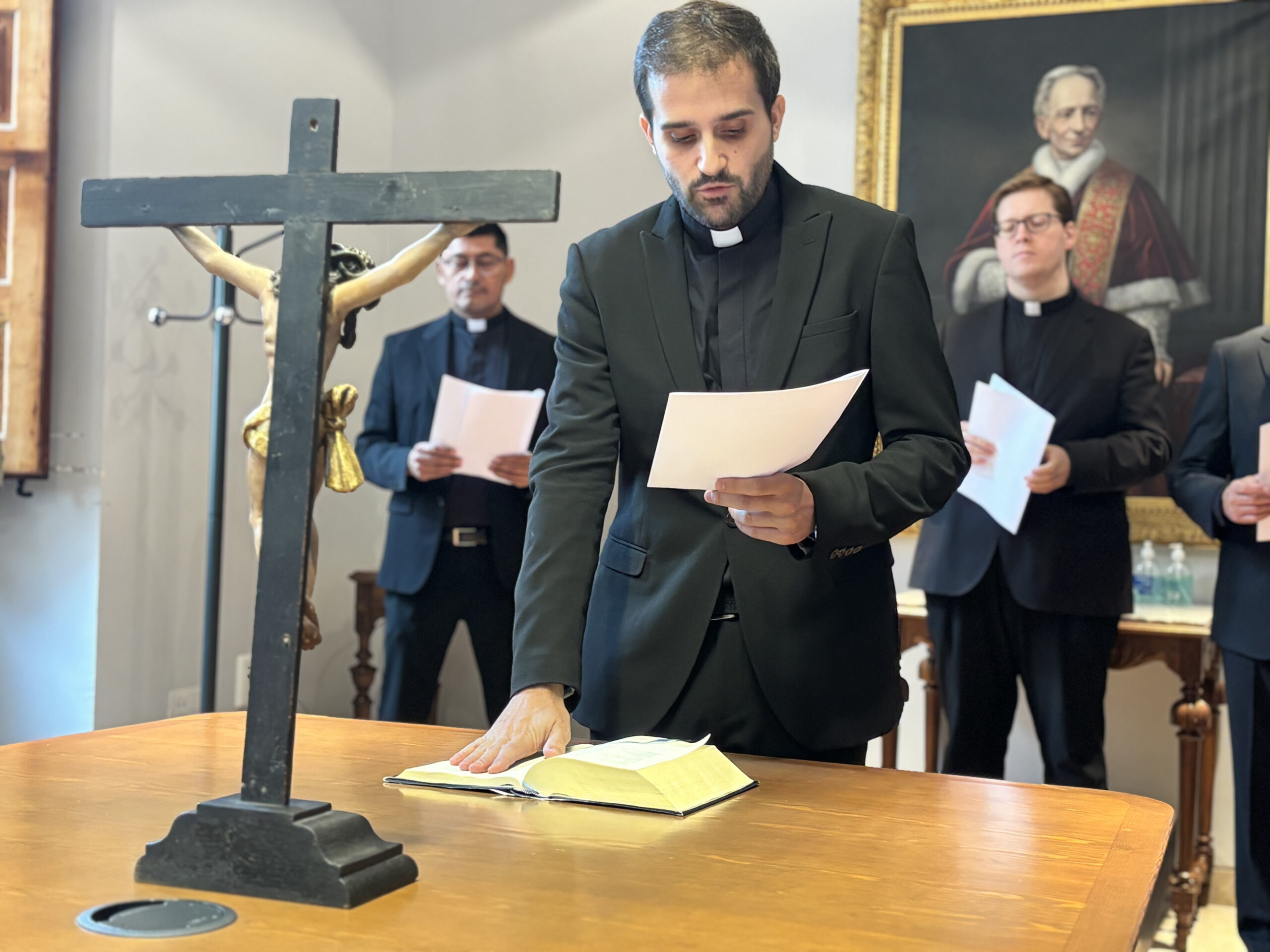 Los diáconos de la Archidiócesis de Zaragoza Luis Sierra, Ignacio Alvarez, Giovanny González y David Calvo, han realizado esta mañana en la Casa de la Iglesia la profesión de fe, el juramento de fidelidad y la promesa de celibato como paso previo a su ordenación sacerdotal que tendrá lugar este domingo 19 de octubre en la catedral basílica del Pilar a las 17.00 horas en una ceremonia presidida por el arzobispo de Zaragoza. Oremos por ellos y su fidelidad.