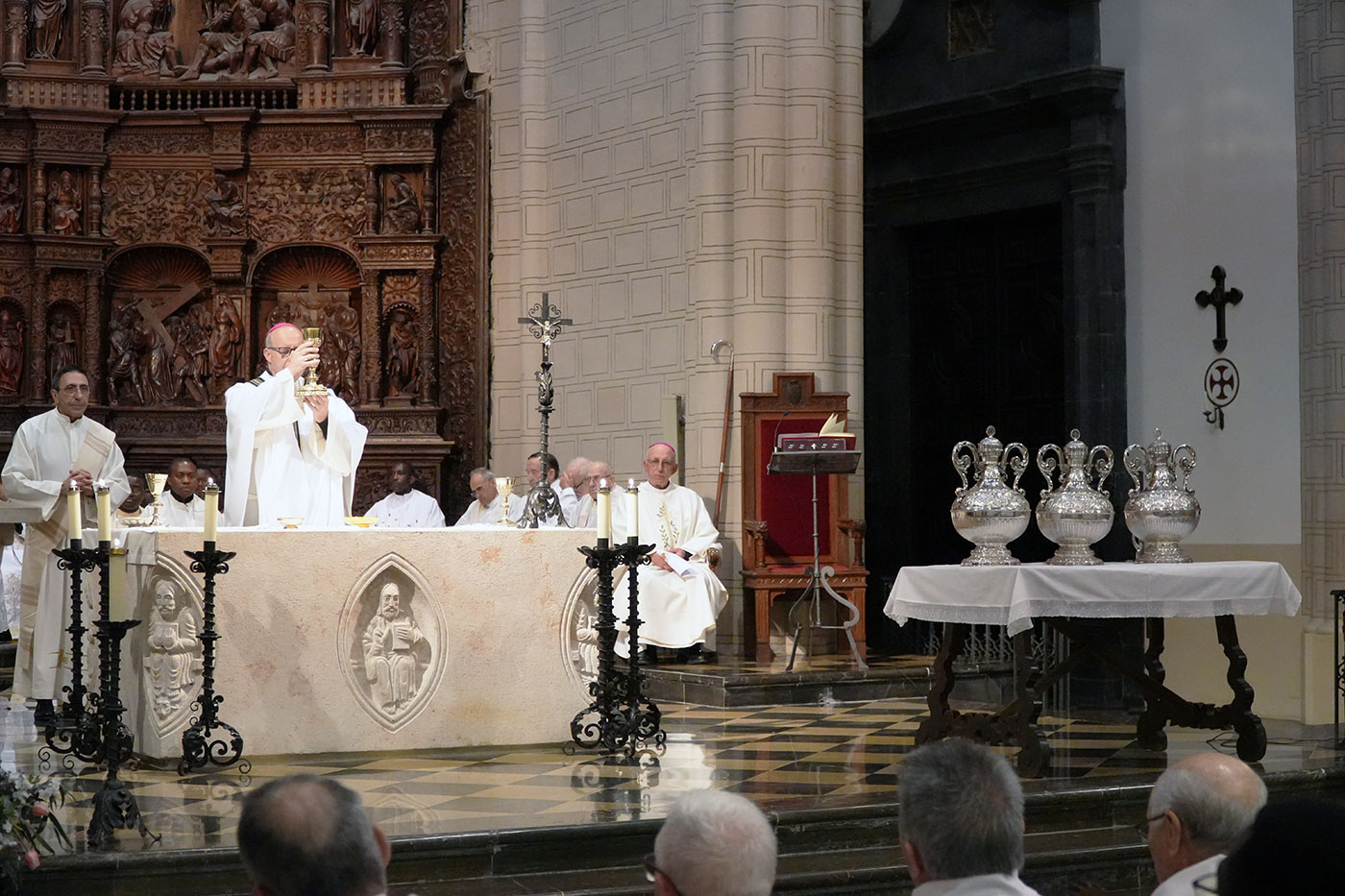 Ya por la tarde tuvo lugar la Misa Crismal en la Santa Iglesia Catedral, presidida por el Sr. Obispo, don José Antonio Satué, quien estuvo acompañado de numerosos sacerdotes, religiosos, laicos y fieles de la Diócesis. Durante la eucaristía se realizó la solemne consagración del Santo Crisma y la bendición de los óleos de los catecúmenos y de los enfermos, signos sacramentales del amor y la misericordia de Dios.
