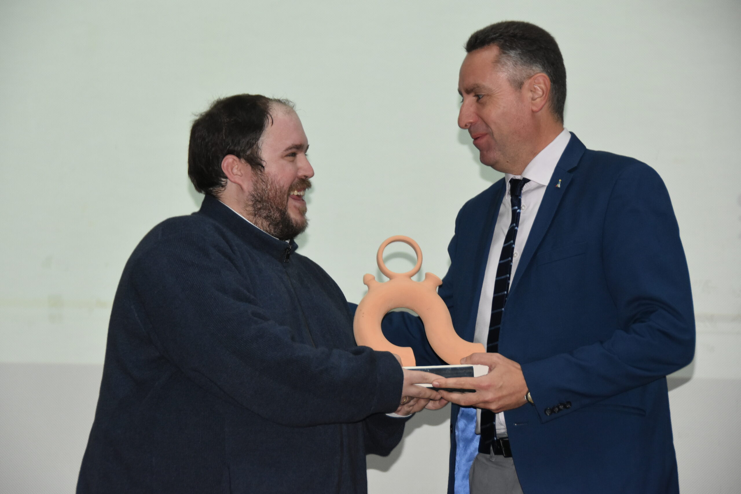 El galardón que se entregó a los premiados tiene una forma curiosa, un botijo con la forma de un interrogante tumbado, sobre una base blanca que incluye el logo de la Mesa por la discapacidad y una placa metálica identificativa con el nombre del ganador.