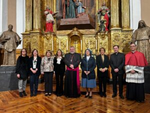 J.A.C.: Ahí, hay tres caminos que confluyen en este itinerario, por una parte, lo patrimonial y cultural, por otra parte, lo pastoral, lo litúrgico, lo espiritual, y por otra la colaboración con la sociedad, lo caritativo social. Estamos hablando del primero de estos caminos, del patrimonial cultural. Ya se han restaurado dos torres, las dos torres de la plaza, es verdad que todavía hay andamios en el interior de una de ellas, la Torre de Santiago, que es la más cercana a la fuente de la Hispanidad. En unos meses se va a cometer la Torre de Santa Leonor, y en el interior, pues ha habido varias actuaciones, lo que pasa es que algunas han quedado inadvertidas, como la limpieza del retablo mayor o esta otra, que no ha quedado inadvertida, porque ha sido una celebración muy luminosa, muy grande que es la restauración de esta capilla de San Joaquín. Hay mucho más por hacer, hay mucho más por hacer. La capilla de San Joaquín, bueno, pues, es la capilla de la Confesión, vemos que ahí era donde podían encuadrarse las nuevas imágenes, entonces quizá fuimos por allí, por esta razón, además, de que nos interesa cuidar mucho las capillas que tienen que ver con la vida de la Virgen. Santa Ana ya está restaurada, San Joaquín, ya está restaurada, San Juan Bautista, también está restaurada, entonces esa serie de los padres de la Virgen María y del Sobrino, de la Virgen María nos permite cerrar un primer ciclo.
