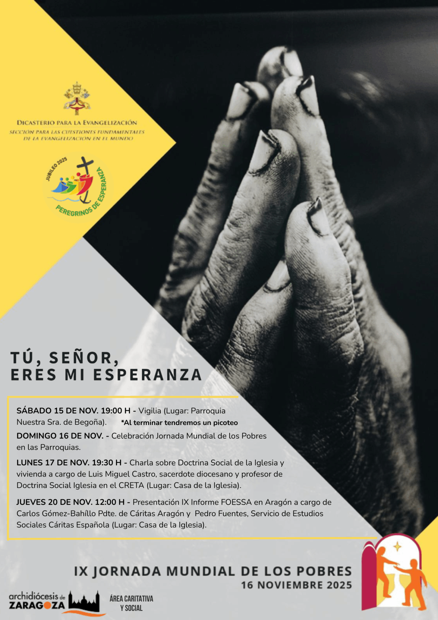 Vigilia, Charla e informe Foessa Aragón con motivo de la Jornada mundial de los Pobres en Zaragoza