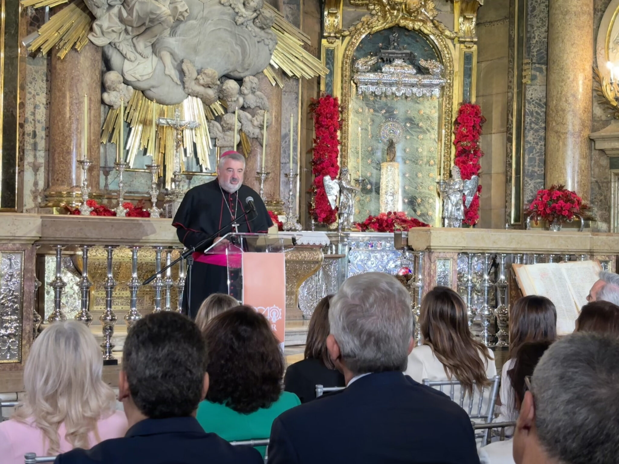 A continuación ha tomado la palabra a alcaldesa de Zaragoza, Natalia Chueca, para señalar el bimilenario de la Venida de la Virgen como un «acontecimiento único en la historia de la cristiandad» y un poderoso símbolo de unión entre todos los pueblos. Resaltó el inmenso legado y cariño que la Basílica y la Virgen generan, a la que describió como «fuerza, madre y guía» de los zaragozanos, mencionando además la histórica visita de Juan Pablo II en 1982 como precedente de su relevancia mundial y su afirmación: «Qué pequeña es y qué fuerza tiene». La alcaldesa transmitió el sentimiento de responsabilidad como herederos de esta historia, asegurando que la celebración «marcará nuestro presente y futuro».